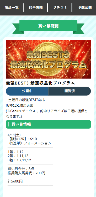 こういう無料予想良いよネ!小遣いの範囲内で買える馬券代のみで