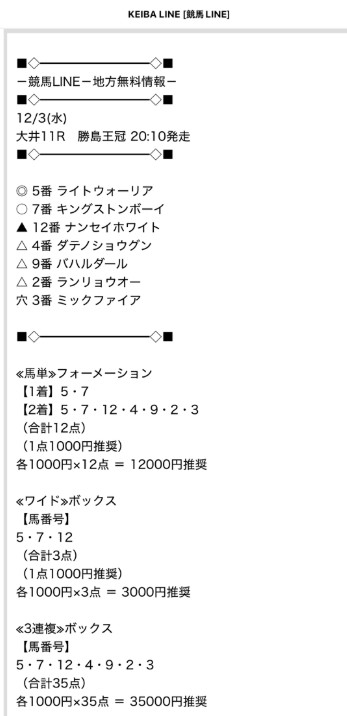 今月3日(水)の地方無料予想でも10万超えの配当を届けているKEIBA LINE