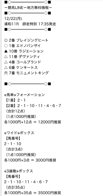 KEIBA LINEの無料予想浦和11R