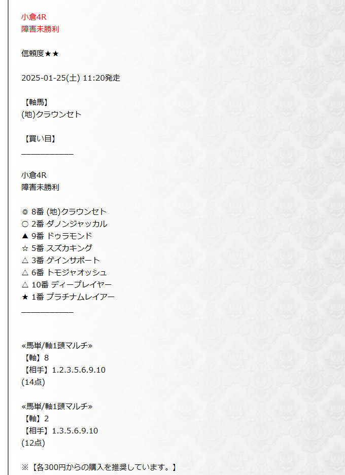 | 的中率 | 回収率 | 無料予想 | 有料予想 | 高配当 |