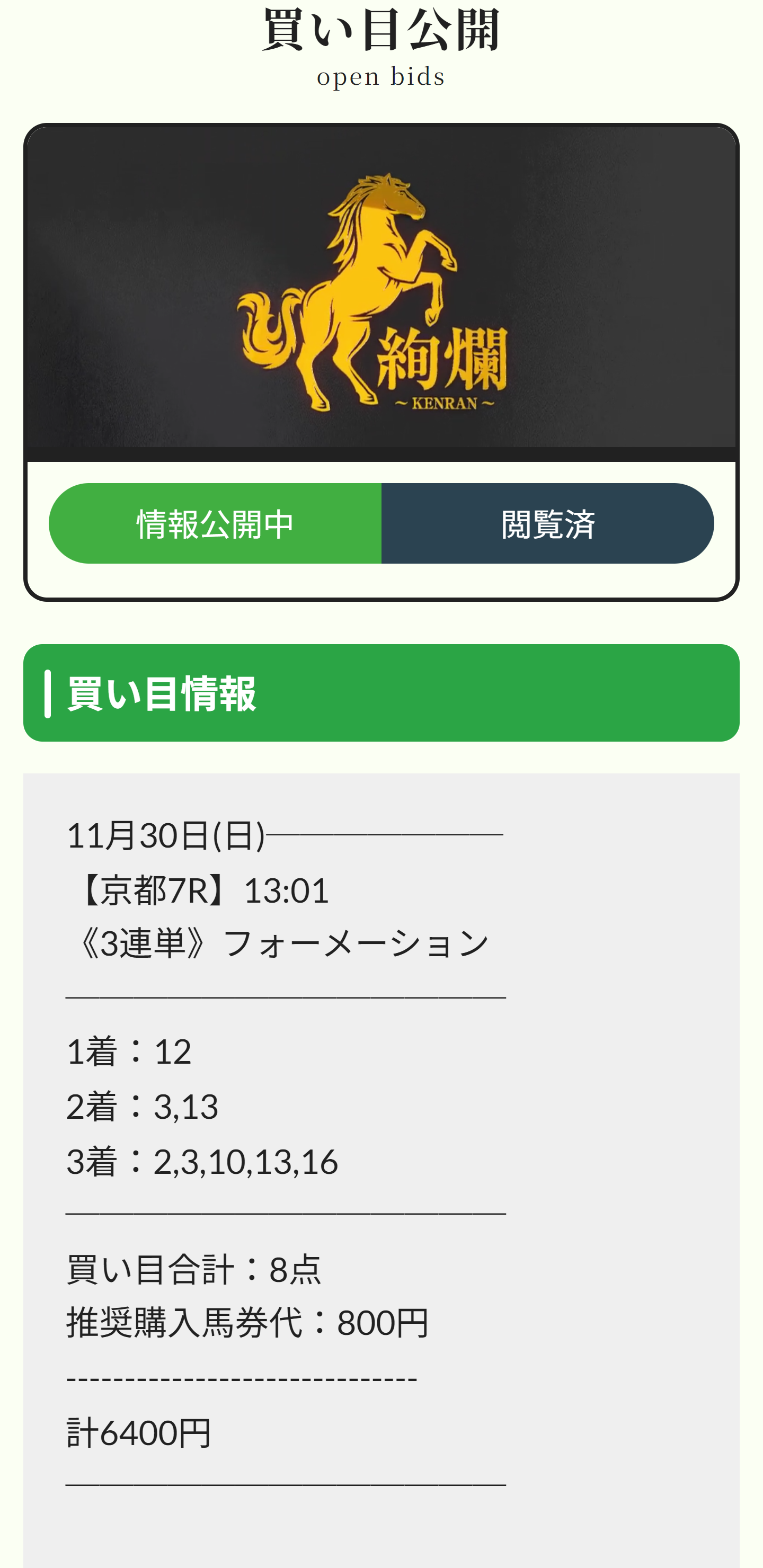 保育士という仕事柄、土日は行事があってレース当日にゆっくり買う時間なんてありません。だから木曜の夜に絢爛を先に買っておいたら…京都7Rの12→3→10が的中。3連単150,470円×800円で1,203,760円。31歳でこんな金額をスマホで見る日が来るとは思いませんでした。