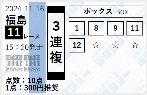 土曜日の福島11RキビタキSの買い目を貰いましたが