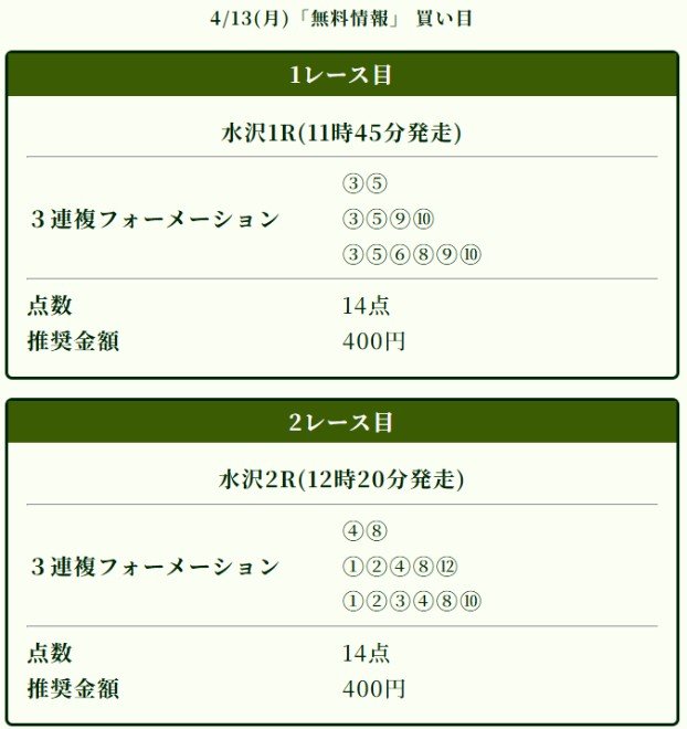 的中率100%な上に無料予想で穴馬取捨能力が高い