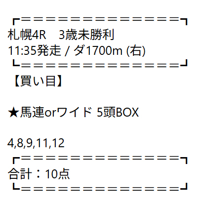 無料予想的中の法則の条件も満たしていたけどまさか2日連続中央無料的中は最高!