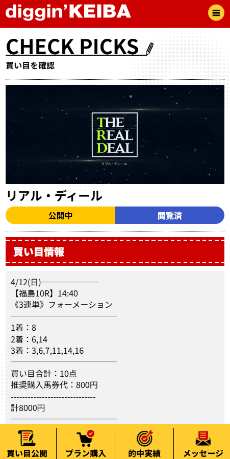 だからディギン競馬のリアル・ディールは、かなり現実的にありがたかったです。