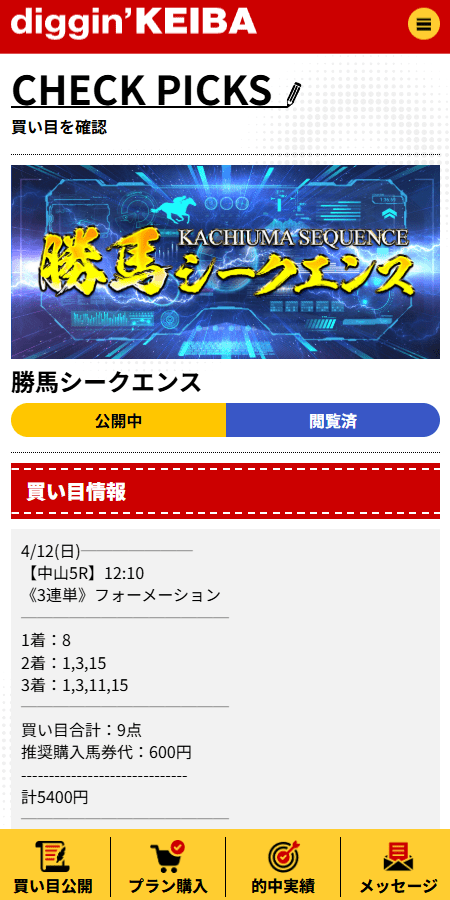 ディギン競馬の勝馬シークエンス、金額ももちろん良かったんですが、それ以上に頭の置き方が上手い。