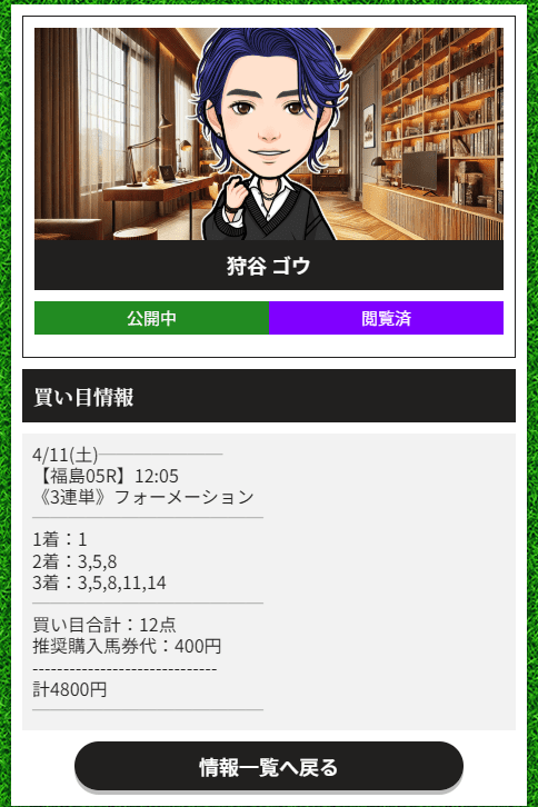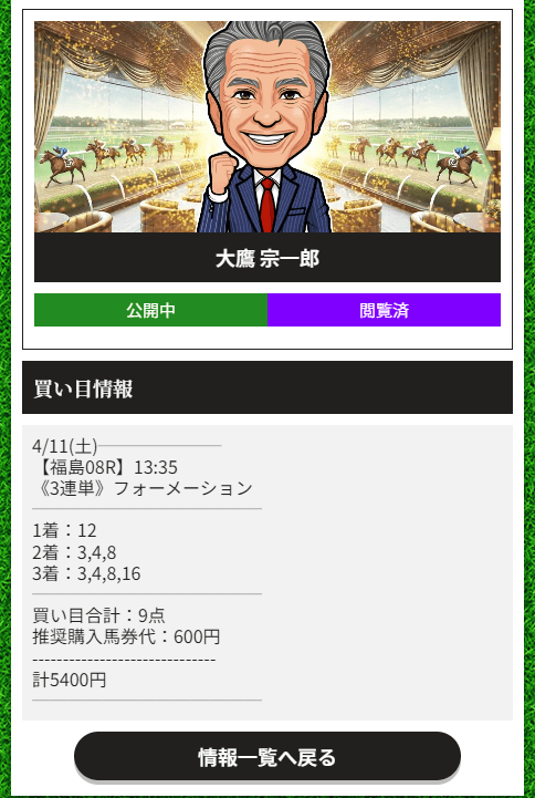 競馬を少しかじってると、1番人気を頭にした買い目ってそれだけで雑に見られがちなんですけど、大鷹宗一郎プランは全然そんな感じじゃなかったです。