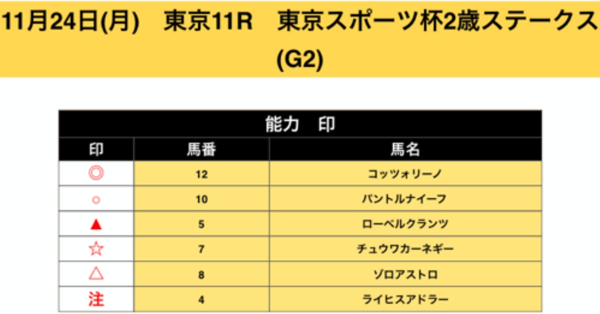 24日(月)G2東スポ杯2歳Sの無料予想で4馬券種的中