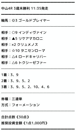無料予想買い目点数1点で的中するのがやっぱりシンプルで一番馬券力を表しているなと思う。