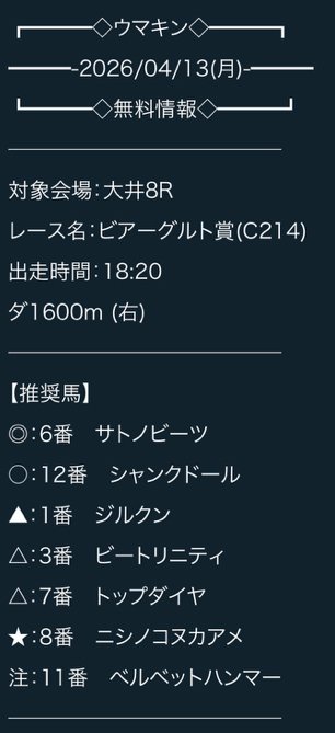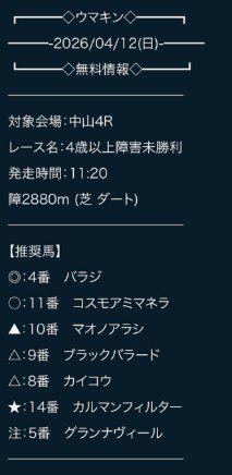 自分はこういうのを見ると、次の障害戦や条件戦で「また無料予想を見たい」と思います。