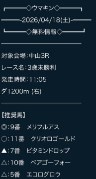 ウマキンは、登録しておいて当日の買い目を受け取る価値を感じさせる結果でした。