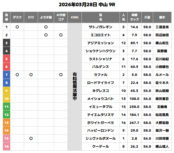 3月28日(土)の中山9Rの無料予想から私は参戦