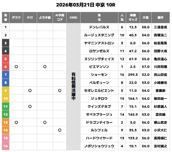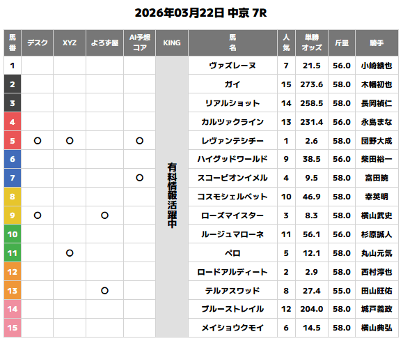 3月22日(日)の無料予想で