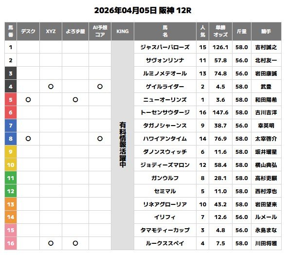 4月5日(日)の阪神最終レースで